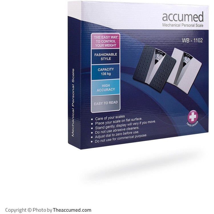ترازو عقربه ای اکیومد (AccuMed) مدل WB-1102 محصول شرکت اکیومد سوییس می باشد. این محصول دارای ویژگی ها و مشخصات ذیل است: