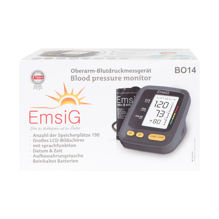 ستگاه فشار سنج دیجیتالی BO14 از برند امسیگ از جدیدترین محصولاتی محسوب می شود که معرفی شده است. این فشارسنج برای اندازه گیری فشار خون دو نفر مناسب است. جایگاه حافظه ای که برای این دستگاه در نظر گرفته شده 198 عدد است. نمایشگر BO14 LCD از کیفیت بالایی برخوردار است و می توان اعداد و اطلاعات نمایش شده روی این دستگاه را به وضوح مشاهده نمود. امکان نمایش تاریخ و ساعت هم روی این دستگاه تدارک دیده شده و باعث می شود اطلاعات با جزئیات بیشتری برای افراد ثبت شود. در نتیجه در صورتی که مشکلی به وجود بیاید تصمیمات پزشکی دقیق تری برای بهبود شرایط جسمانی افراد می توان گرفت. هشدار خطا اندازه گیری دستگاه به شما تذکر می دهد که روند ارزیابی فشار خون به درستی طی نمی شود و موانع خطای دستگاه را برطرف نمایید. در نتیجه با رعایت نکات صحیح می توانید به دقت نتایج به دست آمده از دستگاه بیفزایید.