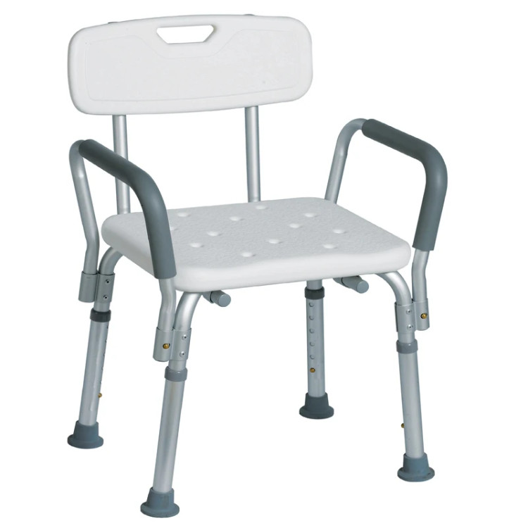 - مبله ، دارای دو دسته در طرفین صندلی حمام که در حفظ تعادل شخص استفاده کننده نقش به سزایی ایفا می کنند . در ضمن بیمار با کمک گرفتن از این دسته ها می تواند راحت تر بر روی صندلی بنشیند و یا اینکه از روی آن بلند شود.