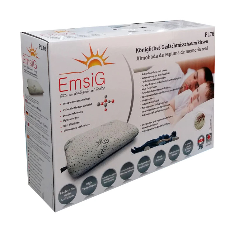 نسل جدید بالشت پزشکی، ارتوپدیک، مموری فوم امسیگ آلمان :این نوع بالش بسیار پیچیده و طوری طراحی شده که موقع خواب بدن را درحالتی مناسب نسبت به سطح قرار دهد. طراحی استفاده شده در این محصول به گونه ای است که هم خواب بسیار راحتی را برای شما فراهم میکند هم وضعیت استخوان ها و به ویژه ستون فقرات را تنظیم میکند. این بالشت ها از جنس مموری فوم تمپرچر امسیگ آلمان ساخته شده اند. این ماده به گرما حساس میباشد و شکل بدن را روی خود به جا می گذارد.استفاده از مواد و ساختار بسیار پیشرفته در این بالشت پزشکی مورد تایید کلینیکی و آزمایشگاهی قرار گرفته است و تولید این محصول با مشارکت کمپانی های 3M & EmsiG سالهاست که انجام میگیرد. سایز بالشت طبی بنا به سلیقه مصرف کننده ها انتخاب میشود. این بالشت ها از نوع حافظه دار و موج شکل و حساس به دمای بدن و سوراخ های بسیار ریز برای عبور هوا و با خاصیت برگشت پذیری (حافظه) مناسب و کاور قابل شستشو با کیفیت لاکچری و ریز بافت با رنگ طوسی کم رنگ مایل به سفید می باشد.3 حالت کلی برای خواب به کمر , بـــه شکم و به بغل خوابیدن می باشد شما از کدام حالت برای خواب استفاده میکنید؟ حالت خواب از فاکـــتور های موثـــر در انتخاب سایز بالش میباشد و اگر به بـــغل میخوابید از استـخوان سر شانه تا گردن معیار انتخاب ارتفاع بالشت شما میباشد. افراد بلند قد سر شانه پهن یا چاق یا درشت بایستی ازسایز بزرگ استفاده کنند ; اگر به شکم میخوابید سایز متوسط بهتر است و اگر به کمر میخوابید ارتفاع متوسط یا بزرگ بودن بالشت را با اندازه گیری مرکز ستون فقرات تا کفه زمین/ تخت خواب شما میتوان انتـــخاب کرد.بالشت پزشکی امسیگ خواب راحـت بدون درد و گرفتگی عضلات را فراهــم آورده است.