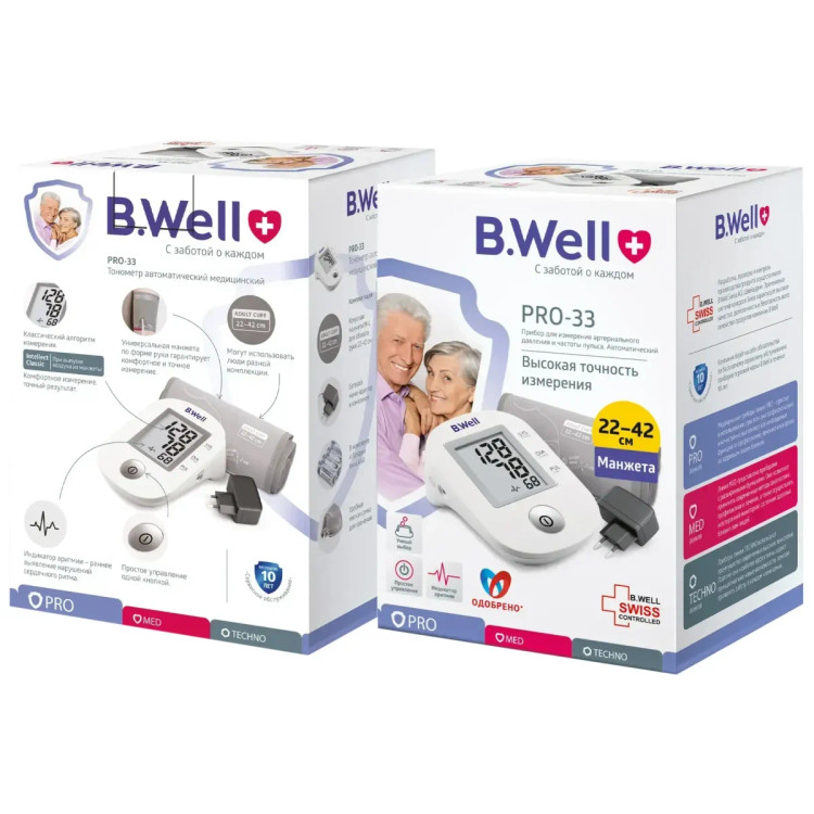 فشارسنج B.well Pro 33 محصول شرکت B.well و ساخت کشور سوئیس میباشد، این محصول بوسیله شرکت رازان طب آپادانا وارد کشور و گارانتی شده است.